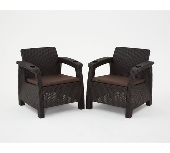 Набор дачный садовой мебели WORKY HomlyGreen 2 кресла и обеденный стол 94×94×74 см, мокко, коричневые подушки ARD259240