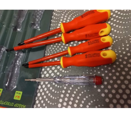 Отзывы о наборе диэлектрических отверток до 1000В, тестер, CrV, двухкомпонентные рукоятки, 5шт СИБРТЕХ 12937