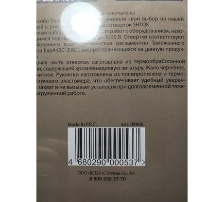 Отзывы о наборе диэлектрических отверток SHTOK 8 шт. картон 1000В 09905