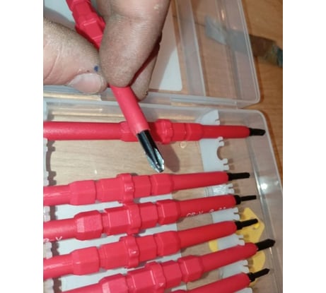 Работаю с электрощитами — отвертки реально изолированы, рука спокойна. Маркировка размеров читается, режущая часть точная. Брал специально для работ под напряжением — пока доверяю полностью