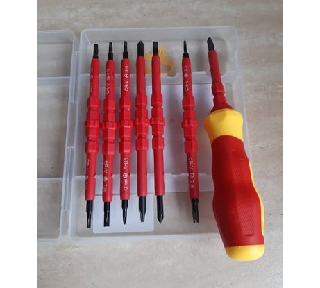 Работаю с электрощитами — отвертки реально изолированы, рука спокойна. Маркировка размеров читается, режущая часть точная. Брал специально для работ под напряжением — пока доверяю полностью