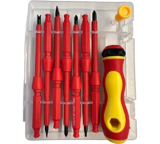Набор диэлектрических отверток TURBOSKY DO71 — профессиональный комплект, выполненный из высококачественной хром-ванадиевой (Cr-V) и S2-стали с термообработкой, что обеспечивает прочность и долговечность инструмента. Эргономичные рукоятки с антискользящим покрытием из пластика и резины позволяют комфортно работать даже при длительном использовании. Изоляция VDE 1000V гарантирует безопасное выполнение электромонтажных, сборочных и обслуживающих работ с напряжением до 1000 В. В комплект входят разнообразные плоские, крестовые, шестигранные и Torx биты разных размеров — универсальный инструмент для электриков и специалистов. Удобный пластиковый контейнер с прозрачной крышкой обеспечивает надежное хранение и быстрый доступ к инструментам.