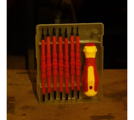 Этот набор стал моим основным инструментом для работ с электропроводкой в квартире. В кейсе есть место для каждой отвертки, ничего не выпадает