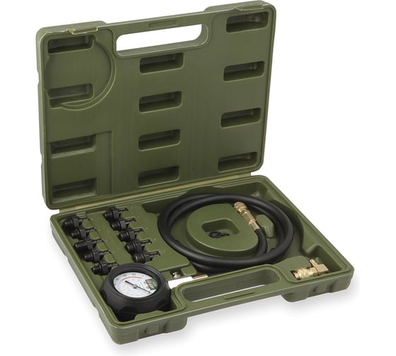 В комплект входят адаптеры с различными видами резьбовых соединений, что позволяет использовать манометр для диагностики большинства моделей двигателей. Пластиковый кейс решает вопрос хранения и транспортировки.