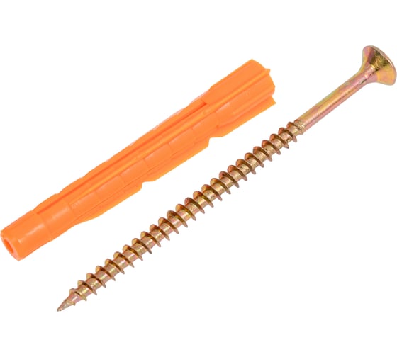 Вопросы и ответы о наборе для крепления ВИРТУОЗ дюбель 6x52 U, шуруп 4x70 потайная головка, желтый цинк, 80 шт. 550-87352