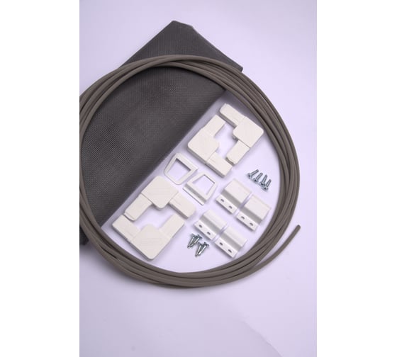 Прочные ручки и держатели из окрашенного металла, обеспечивая удобство эксплуатации и привлекательный внешний вид, крепятся на саморезы, которые также как и уплотнительный шнур входят в ремкомплект для противомоскитной сетки. Уголки из литого окрашенного в массе ПВХ служат надежным и аккуратным соединением рамной конструкции сетки.