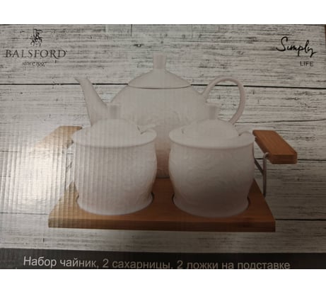 Набор для сервировки Balsford РОЗА 6 чайник 1200 мл, 2 сахарницы 300 мл с ложками на бамбуковой подставке, цветная упаковка 193-48024 предназначен для домашнего использования.