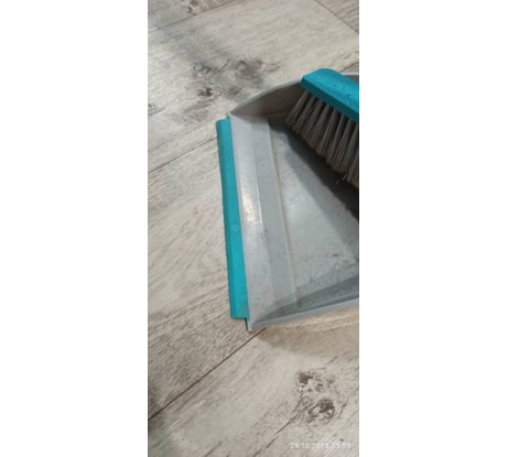 - Резиновый край совка обеспечивает плотное соприкосновение с поверхностью, не оставляя мусора под собой.
