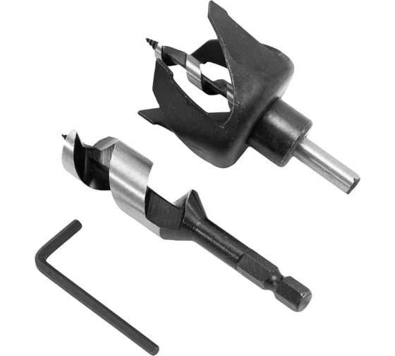 В наборе винтовое сверло 22 мм, кольцевая коронка 54 мм и ключ шестигранный 4 мм.