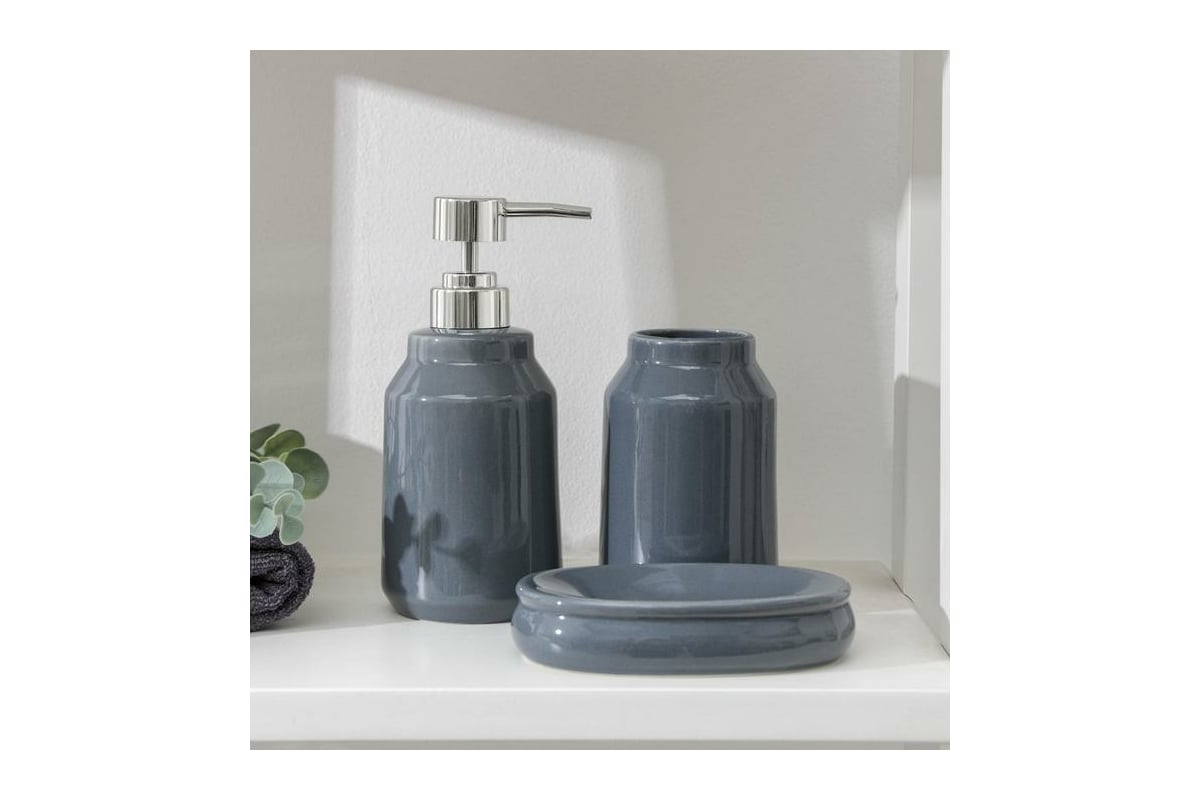 Набор для ванной Доляна Глянец 3 предмета, серый 5459657
