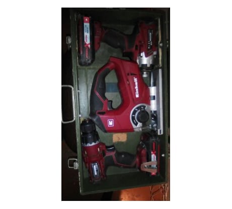 Товар куплен в июне 2018 года, когда я понял что за аккумуляторным инструментом на основе литиевых технологий будущее. Литиевые аккумуляторы за счет своей ёмкости и способности отдавать большие токи значительно расширяют спектр инструментов в которых они могут применяться. Фирма Einhell выбрана по причине конкурентной цены и широкой линейки инструмента для мастеркой, стройки, сада-огорода. К тому же у неё хорошие немецкие корни(обратите внимание на фотках шильдиков Германия и адрес сайта), хотя и сделана в Китае(а что у нас не Китай!?) На данный момент у меня уже 8 представителей этого бренда, включая 6 аккумуляторных семейства Power X-Change. Я не жалею о своём выборе, более того я доволен и счастлив. Конкретно о приобретенных в этом заказе девайсах. Очень правильно сделал, что купил комплектом, получилось дешевле чем порознь. С 18 года использую регулярно, но не очень интенсивно. На даче самое оно. Чем тащить удлиннитель взял инструмент и пошел что-нить сверлить, пилить, шлифовать... На кладбище брал с собой, старую краску отдирать с оградки...ну и т.д и т.п. Всё работает, ничего не ломалось не барахлило (как, впрочем, и на всех остальных представителях Einhell) Стучу по дереву и плююсь через плечё))). Сначала показалось, что выключатель на болгарке неудобен и толстовата она, но потом привык и сейчас ваще норм.