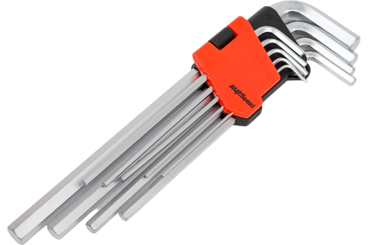 - Набор экстрадлинных Г-образных ключей HEX AV Steel 1,5-10мм 9 предм. AV-363109 отличается долгим сроком службы