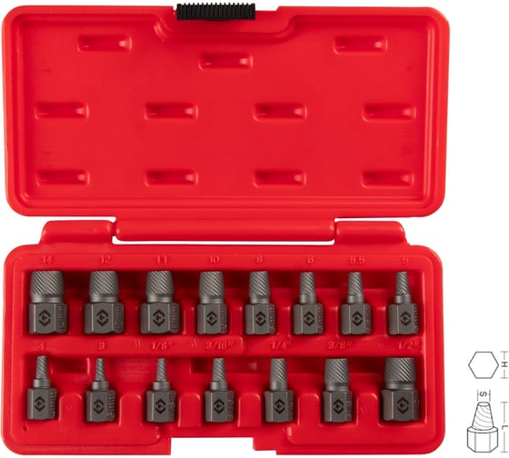 Набор экстракторов KING TONY 3-14 мм, 15 предметов, кейс 11015SQ01