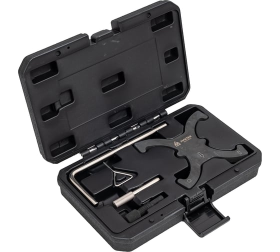 Набор фиксаторов распредвала/коленвала FORD МАСТАК 103-21403C поставляется в пластиковом кейсе, отличающимся высокой прочностью, что обеспечивает сохранность комплекта при его хранении и транспортировке с одного рабочего места на другое. Посредством данного набора процесс настройки положения элементов ГРМ и КШМ систем становится быстрее и удобнее.