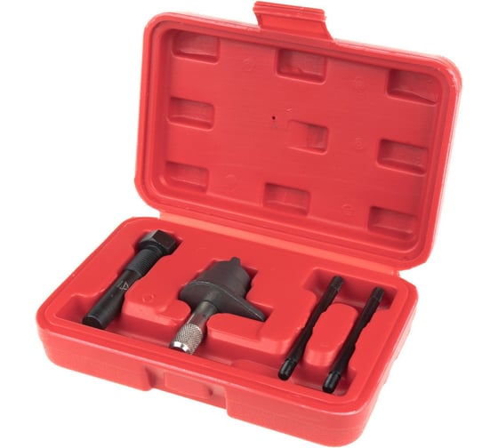 Профессиональный набор инструментов для фиксации и правильного позиционирования шкивов распредвалов и коленчатого вала при установке ремня ГРМ на бензиновых двигателях VAG объемом 1.2 литра (серии EA111, CBZA, CBZB и другие).