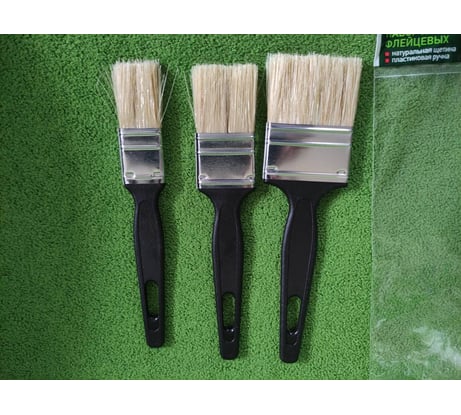 Набор флейцевых кистей СИБРТЕХ 3шт., натуральная щетина, пластиковая ручка 82507