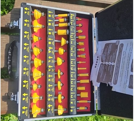 Фрезы острые, набор охватывает большинство задач по дереву. Работают ровно, без вибраций