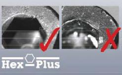 Особый профиль Профиль ключей Hex-Plus обеспечивает более продолжительный срок службы винтов с внутренним шестигранником за счет больших опорных поверхностей. |