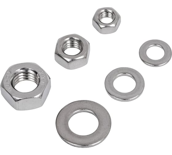 Набор гаек и шайб из нержавеющей стали А2, М 8,6,5 КРЕПСТАЛЬ.