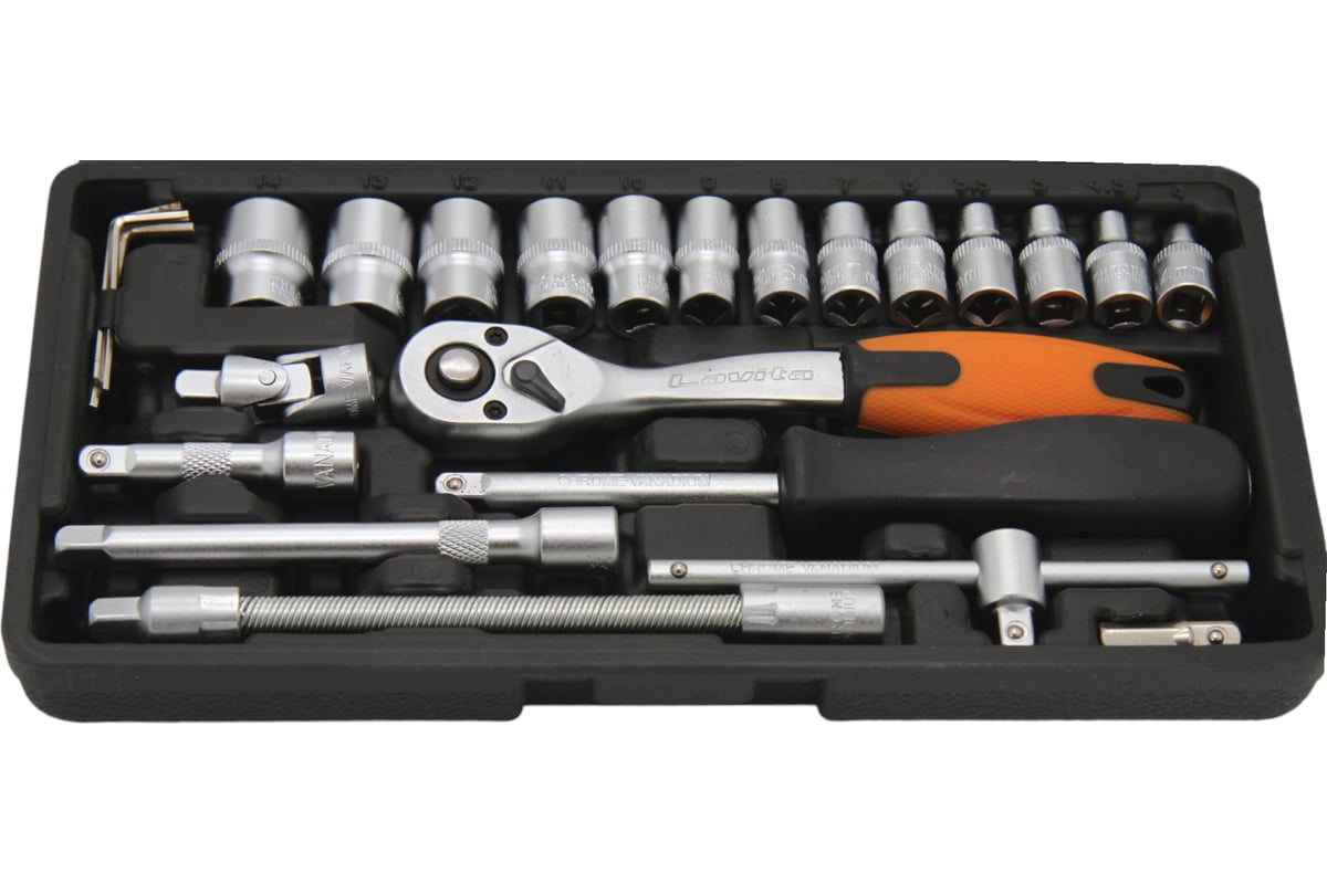 Набор головок и бит LAVITA 46 предметов, КВАДРАТ 1/4", в пластиковом футляре LA 500046