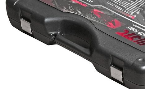 Удобство хранения Переносной чемодан оснащен защелками, а также ручкой, что облегчает переноску комплекта и обеспечивает надежность хранения инструмента. |