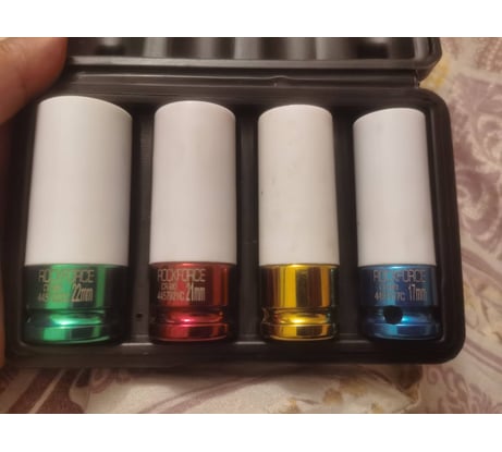 Разнообразие размеров В комплект входят головки 17, 19, 21 и 22 мм — самые востребованные для колесных гаек.