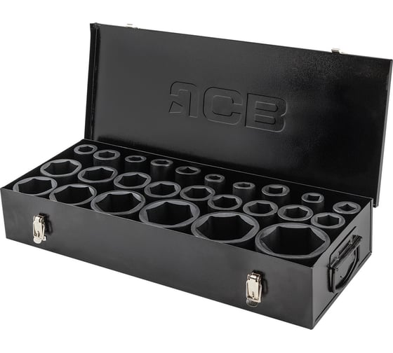 Профессиональный комплект ударных глубоких головок JCB предназначен для работы с высоконагруженными резьбовыми соединениями в грузовом транспорте, спецтехнике и промышленном оборудовании. Головки выполнены из прочной стали CR-MO (хром-молибден), рассчитанной на использование с мощным ударным инструментом.