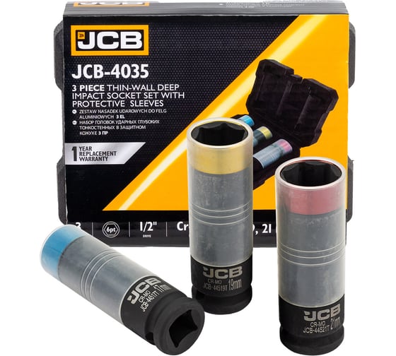 Набор головок ударных глубоких тонкостенных в защитном кожухе JCB 3пр. 1/2 6pt JCB-4035(62168)
