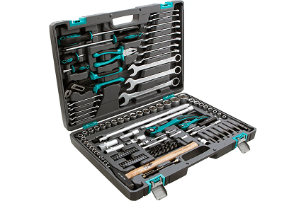 Когда набор продуман до мелочей Нужен универсальный набор инструментов для ремонта техники или слесарно-монтажных работ? Представляем надежное решение от STELS. Комплект состоит из 119 предметов: от отверток и однорычажного воротка до торцевых головок размером 4 – 32 мм и 43 бит основных типов: SL, PH, PZ, HEX и TORX. Отличное решение для профессионалов.