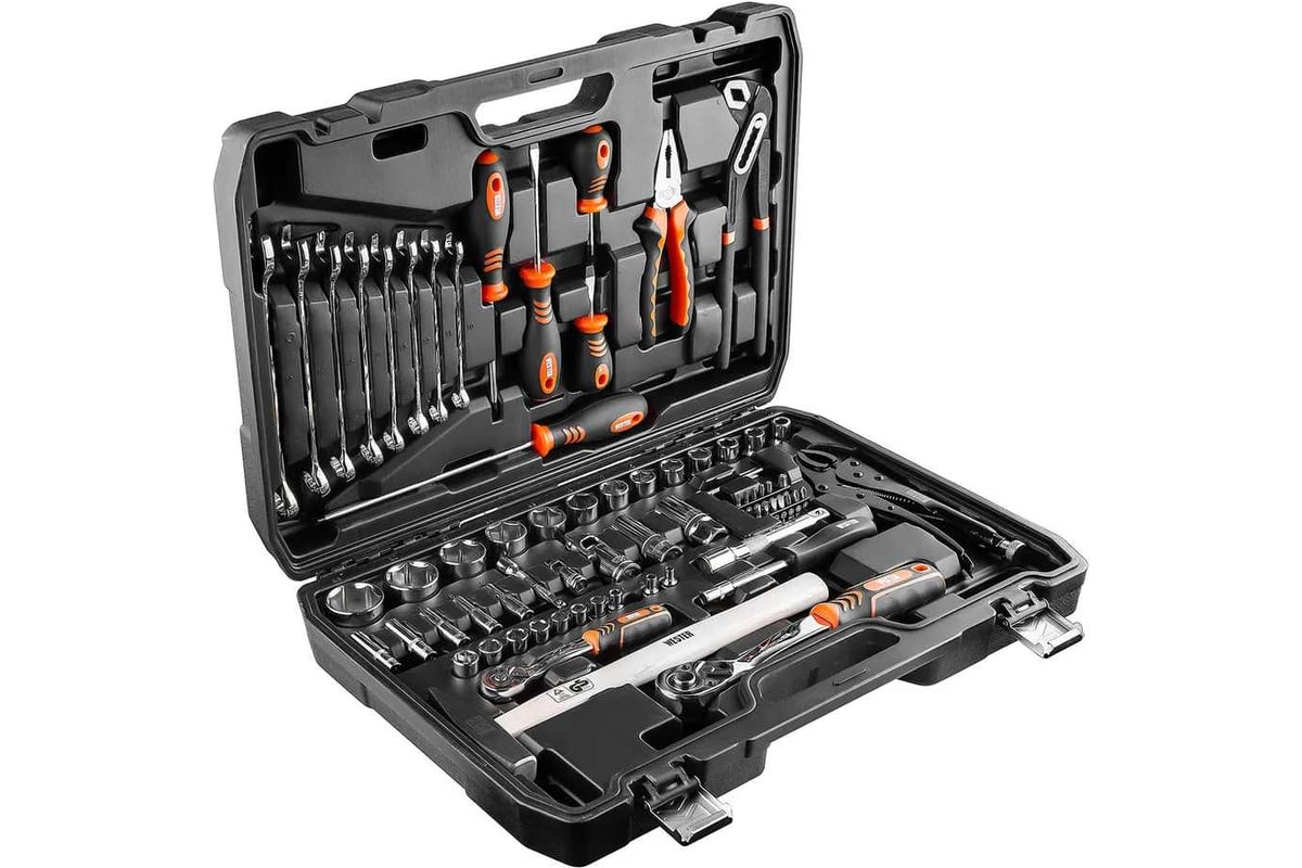 WESTER WT072– набор инструментов, содержит в себе 72 предмета для самых разных ремонтно-монтажных, демонтажных, столярно-слесарных работ. Пригодится дома, в саду, гараже, на производственных участках, автосервисах и станциях техобслуживания.