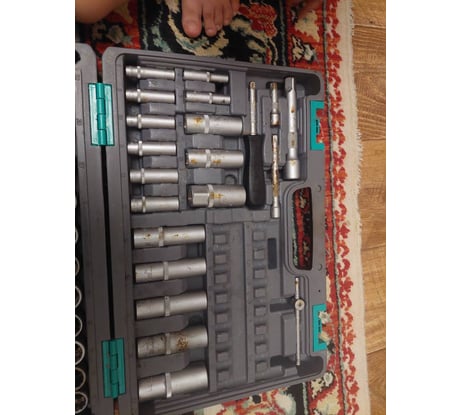 внутренний пластик кейса тонковат, докинул пару головок(свечник на 18 например интересная тема для китайского мопеда, а 12гранная головка на 19 проскальзывает) и он без проблем выгнулся, к тому же сверху со временем стали выпадать части из гнезд, а снизу и с нови не держались. инструмент крепкий если его не перегружать, и речь даже не о срыве гаек трещеткой(трещетки кстати целы), а в целом в использовании в пределах этого же набора, потому что удлинитель 1/2 и вороток пали в бою со ступичными гайками на 35, затянутых трубой и заржавевших. так же на некоторых головках появилась ржавчина после работы в дождь.