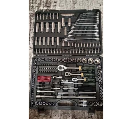 Широкий ассортимент: Включает 218 предметов, что позволяет выполнять различные задачи без необходимости приобретения дополнительных инструментов. Комбинированные ключи сочетают в себе функции накидного и рожкового гаечных ключей, что увеличивает удобство работы в ограниченных пространствах. Г-образные ключи позволяют работать с болтами в труднодоступных местах, обеспечивая доступ там, где стандартные инструменты не подходят.