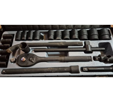 Универсальность. Набор состоит из 24 предметов, включая торцевые 6-гранные ударные головки различных размеров, начиная от 8 мм и заканчивая 32 мм. Это позволит подобрать нужный инструмент для любой задачи. Комплект также включает трещотку, удлинители длиной 125 и 250 мм, вороток длиной 250 мм, кардан и вороток Т-образный.