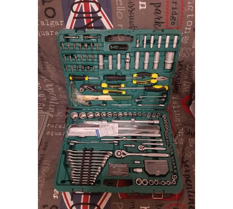 Отличный набор, просто великан во втором поколении наборов ТМ Арсенал. Комплектация шикарная: тут есть все для ремонта авто, как в гараже, так и в дороге (для дальних поездок просто незаменим): от большого ассортимента бит и головок, трещеток, удлинителей и воротков, и заканчивая динамометрический ключом. Несмотря на размеры кейса, его можно смело положить вниз багажника, а все остальные вещи поверх него, т.к. кейсы у Арсенала ударопрочные с металлическими углами и петлями, и плюс ко всему ещё и морозостойкие. И бонусом, пожизненная гарантия на инструмент. Всем однозначно рекомендую.