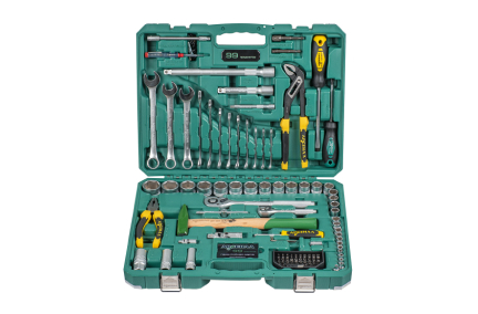 - Функциональность Несколько переходников и удлинителей, а также вороток и трещотка позволяют работать в самых стесненных условиях