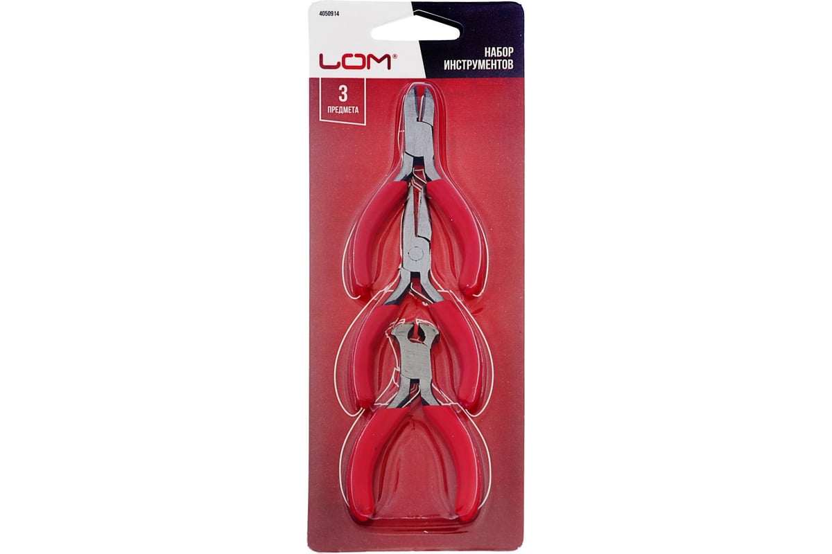 Набор инструментов ЛОМ бокорезы, длинногубцы, клещи, обрезиненные рукоятки, 80 мм 4050914