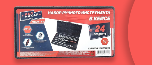 Набор инструментов Дед Макар МК24-41 24 предмета 00-00015620 используется для ремонтных и монтажных работ. Материал рабочей части инструмента: хром-ванадиевая сталь. Это обеспечивает надежность и долговечность. Комбинированные рукоятки с противоскользящим покрытием обеспечивают надежный захват и удержание инструмента. Пластиковый кейс служит для удобной переноски и хранения.