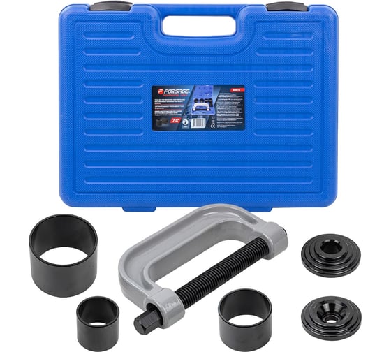 Набор инструментов от бренда Forsage предназначен для снятия и установки шаровых опор, подшипников и сайлентблоков. Он станет надёжным помощником как в гараже или домашней мастерской, так и на профессиональном СТО. Конструкция набора специально разработана для работы с деталями тугой посадки — шаровыми опорами, универсальными шарнирами и элементами рулевого узла. Все комплектующие изготовлены из прочного материала, устойчивого к механическим нагрузкам, что гарантирует долговечность и надёжность инструмента.