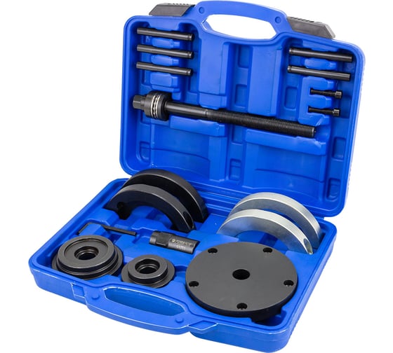 Профессиональный комплект инструментов для выпрессовки и установки ступичных подшипников (Ø 85 мм) специально разработан для автомехаников, которым важно выполнять работы быстро, удобно и без лишнего демонтажа узлов. Набор позволяет производить замену подшипников прямо на автомобиле, что значительно сокращает время ремонта и повышает эффективность работы.