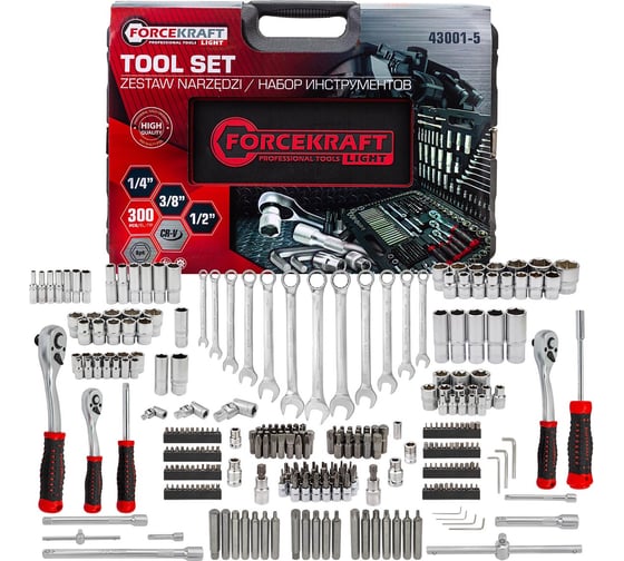 Набор инструментов Forcekraft 300 предметов 1/4, 3/8, 1/2, 6 граней FK LIGHT-43001-5(59639)