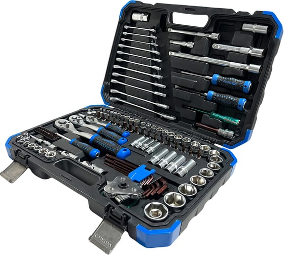 Полный комплект (121 предмет) – включает всё необходимое для ремонта и обслуживания автомобиля, от головок до съёмника фильтра.