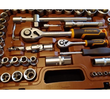 Универсальный набор торцевых головок FORSTIME — оптимальный выбор для автолюбителей и профессионалов, нуждающихся в надежных и свободных инструментах для ремонта автомобилей и других технических работ. Все инструменты изготовлены из высококачественной стали, что обеспечивает их стойкость к износу и надежную работу при интенсивных нагрузках.
