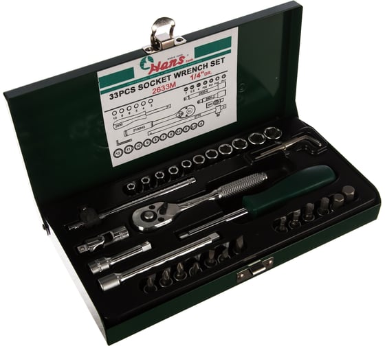 Набор инструментов Hans 1/4" 33 предмета в металическом ящике 2633M