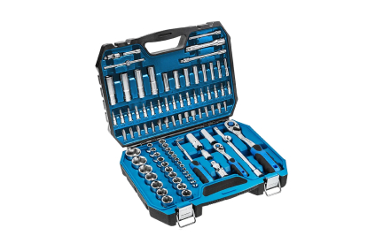 Прочность и надежность: Торцевые головки, биты и аксессуары изготовлены из высококачественной легированной стали CrV, обеспечивающей устойчивость к интенсивным нагрузкам и долгий срок службы.