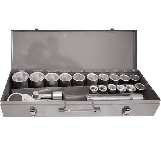 - Головки: 6-гранные 3/4" (17, 19, 21, 22, 24, 27, 30, 32, 34, 35, 36, 36 (12 гр), 38, 41, 46, 50 мм) - 16 шт.