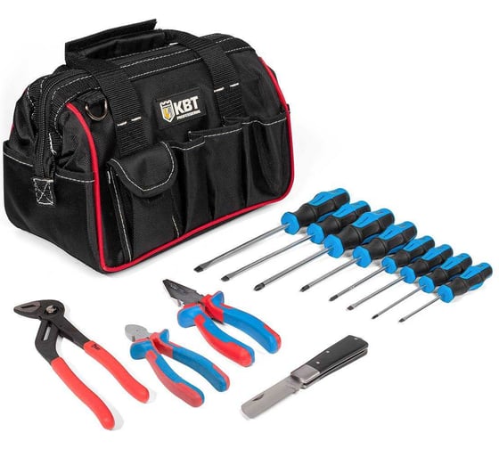 Набор инструментов КВТ НИЭ-05 Домашний мастер 69812 поставляется в удобной и вместительной сумке. Рабочие части инструментов изготовлены из хромованадиевой стали. Все инструменты обладают двухкомпонентными рукоятками, что делает работу удобной. В наборе поставляется нож для снятия изоляции с проводов.