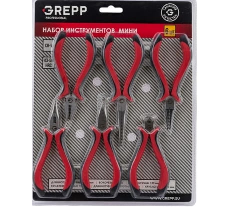 Набор инструментов мини Ladina GREPP авторазжим, двухкомпонентная рукоятка, 6 предметов 205-136 предназначен для различных слесарных, монтажных, столярных и строительных работ. Инструменты выполнены из высокопрочной легированной стали. Материал отличается надежностью и долговечностью. Эргономичные двухкомпонентные рукоятки выполнены с учетом анатомических особенностей ладони, за счет чего подходят для длительной работы без усталости рук.