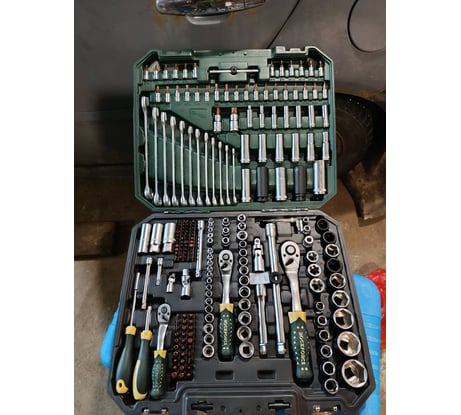Набор инструментов Premium от бренда Rockforce — это универсальный комплект для автосервиса и гаража, в котором продумана не только комплектация, но и материалы изготовления. В набор входят ударные головки из хромомолибденовой стали (Cr-Mo), рассчитанные на работу с высокими нагрузками, а также остальные элементы — ключи, биты, трещотки и стандартные головки — выполнены из хромованадиевой стали (Cr-V), обеспечивающей прочность и долговечность при ежедневном использовании.