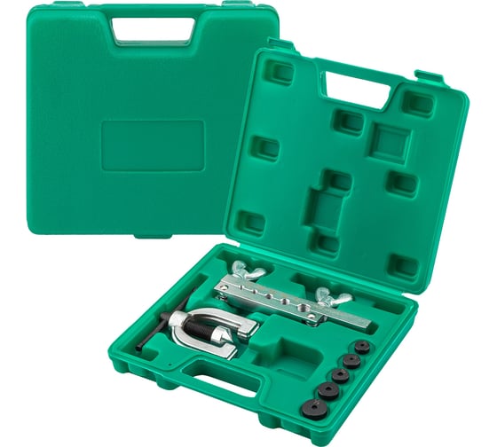 Набор инструментов для развальцовки трубок 7 предметов от бренда Rockforce — это профессиональное приспособление для подготовки медных, алюминиевых и тонкостенных стальных труб к соединению методом развальцовки. Набор позволяет формировать аккуратный раструб (воронку) на конце трубки для последующей пайки или обжима фитингами. Инструмент охватывает пять наиболее востребованных дюймовых размеров: 3/16", 1/4", 5/16", 3/8" и 1/2".