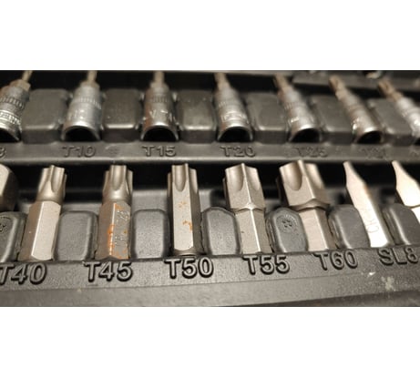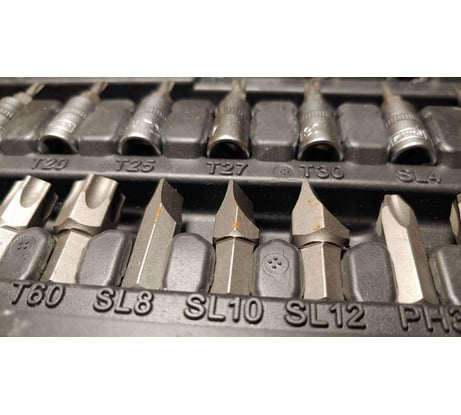 - Биты 5/16": H7, H8, H10, H12; T27, T30, T35, T40, T45, T50 SL7, SL8, SL10, SL12; PH3, PH4; PZ3, PZ4 - 18 шт.;